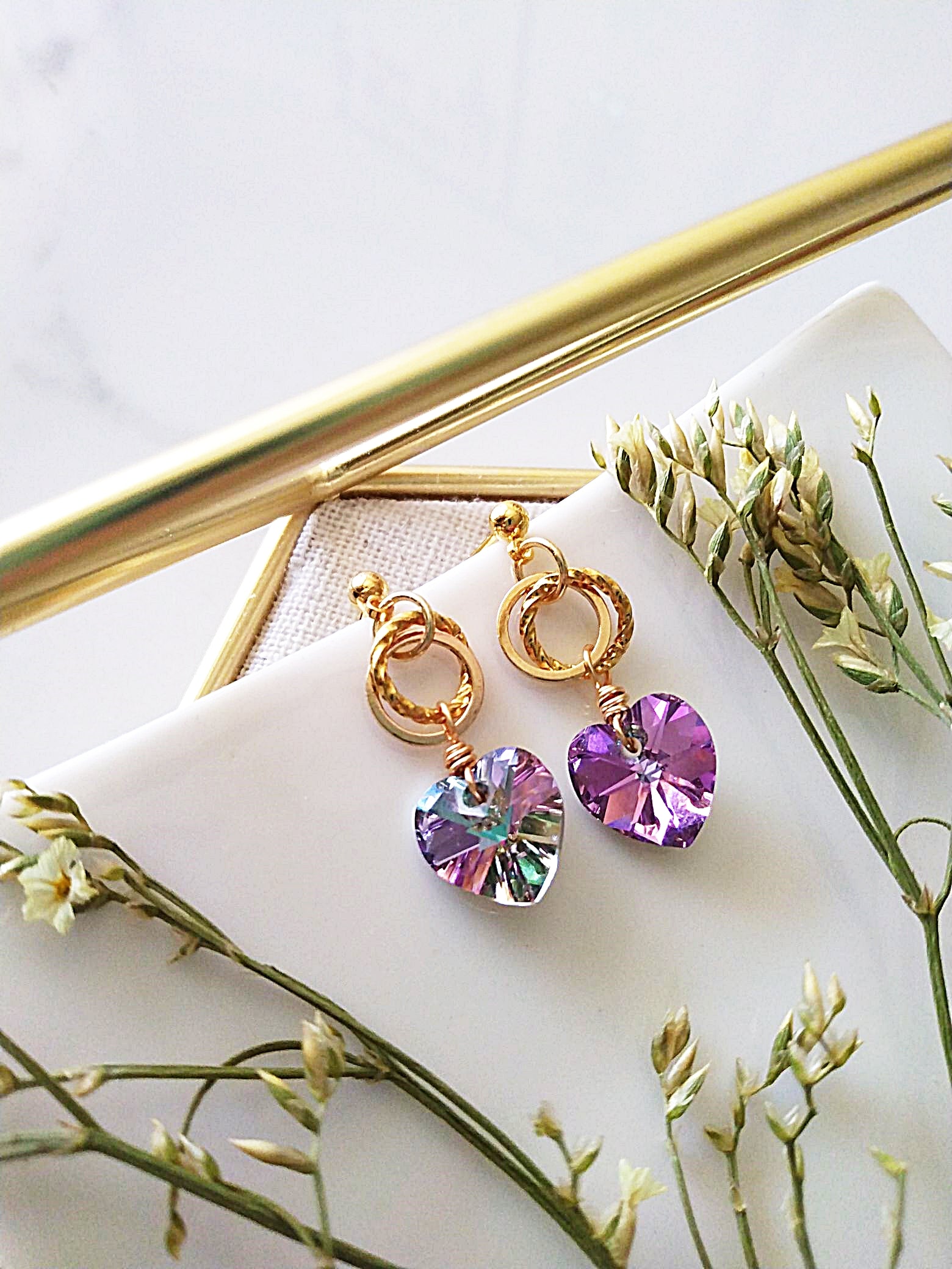 Twisted Ring Crystal Heart Gold Filled Earrings E140076