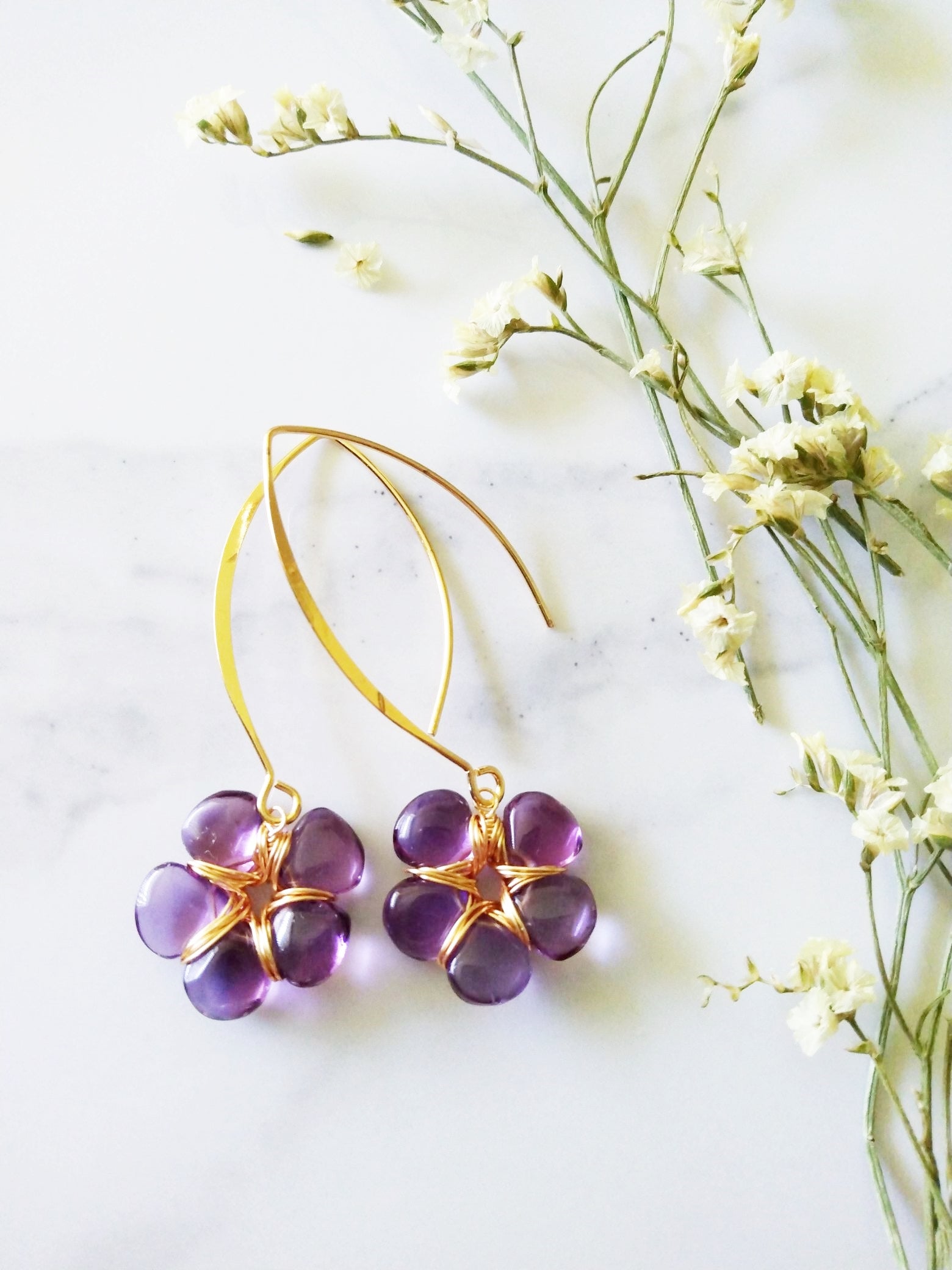 Amethyst Flower Bridal Wedding Gold Filled Earrings E140003