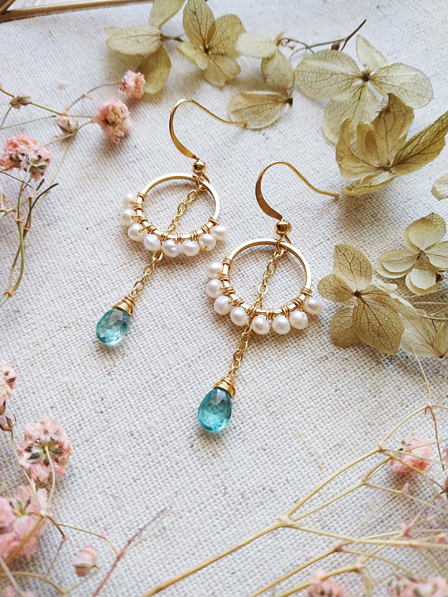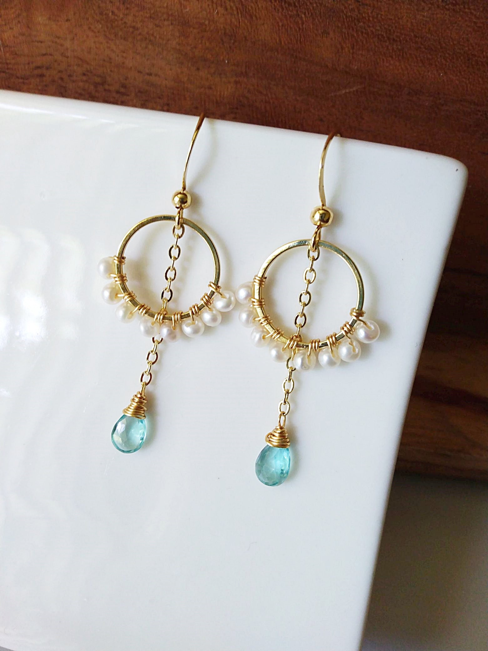 Tiny Freshwater Pearl Apatite Ring Gold Filled Earrings E140097