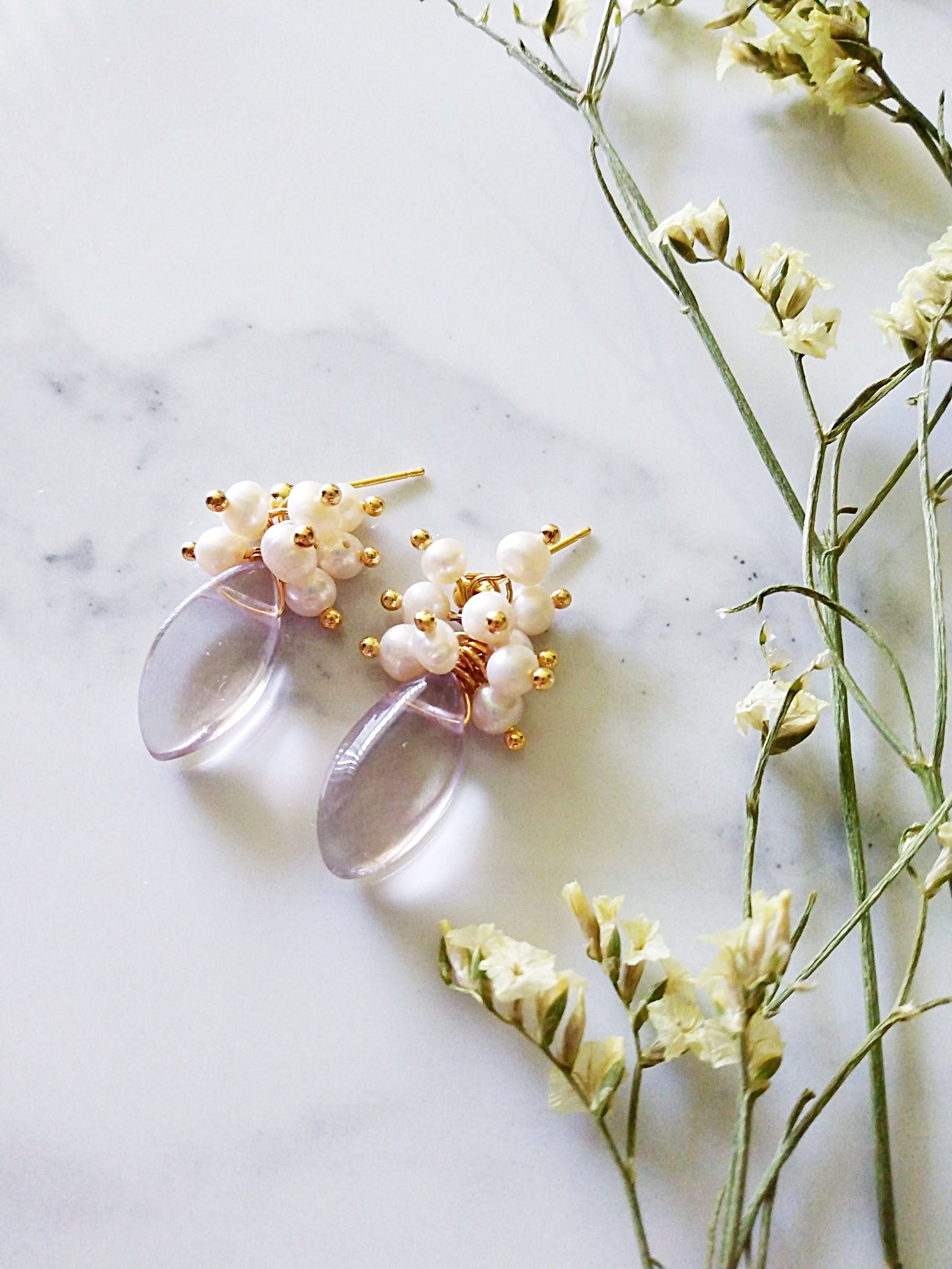 Purple Fluorite Pearl Cluster Gold Filled Earrings E140113