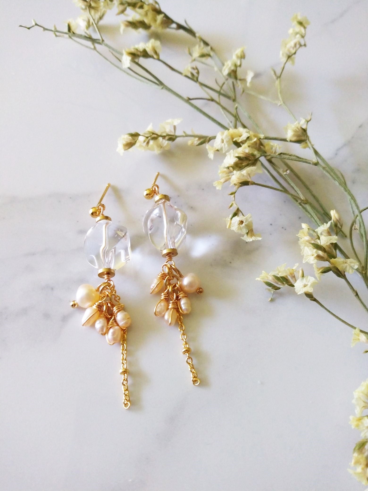 Clear Quartz Pearl Cluster Gold Filled Earrings E140125