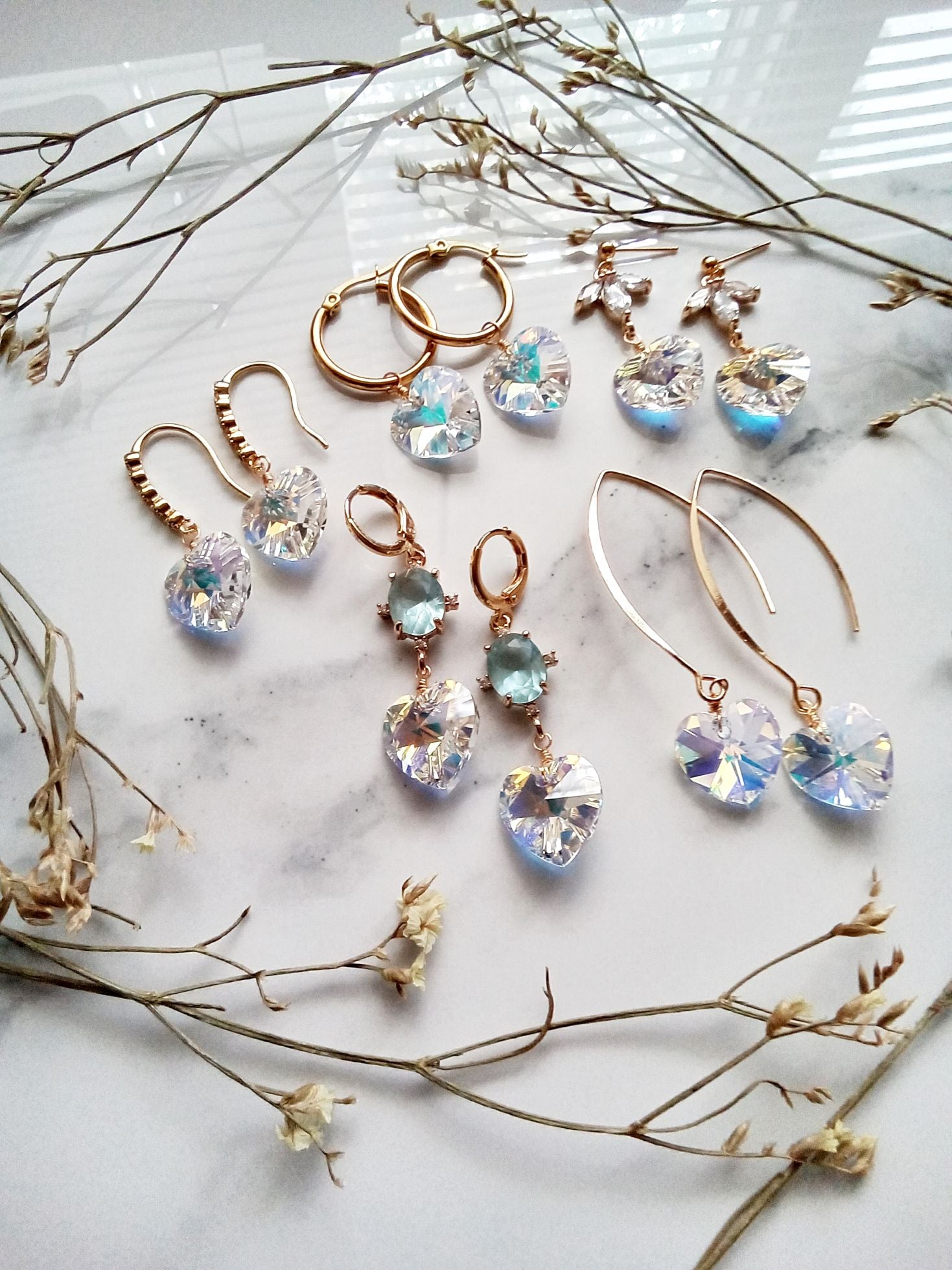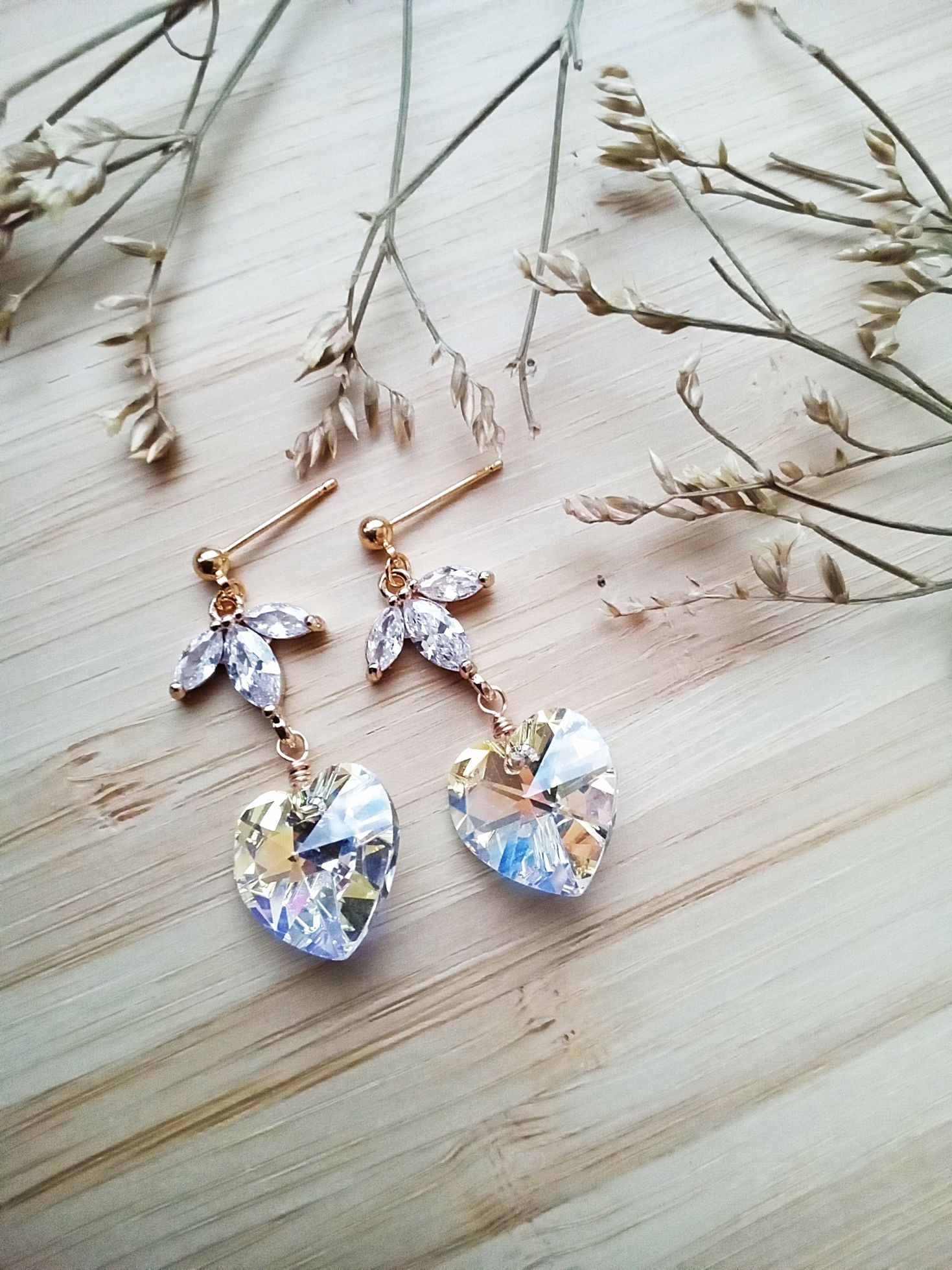 This romantic bridal jewelry piece features a flower-shaped focal design with a heart crystal finished in aurora borealis. The crystal’s unique coating reflects a vibrant array of colors, adding luminous depth and elegance. Ideal as a bridesmaid gift, it beautifully captures sentiment and style for memorable occasions.